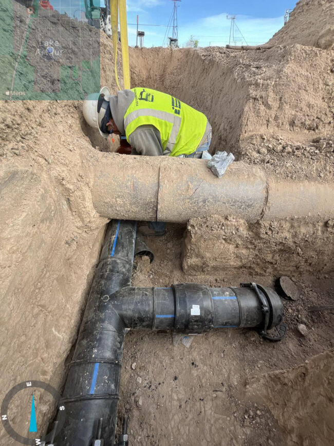 Construction of approximately 12,100LF of 6, 8 and 14-inch C-900 PVC pipe, 560 LF of 6, 8 and 14″ directional drilled HDPE DR 11 HDPE, isolation valves, hydrants, meter coil pits, and other appurtenances, trench groundwater dewatering, rock excavation, lien fill encasement, asphalt patching, concrete curb and sidewalk replacement.